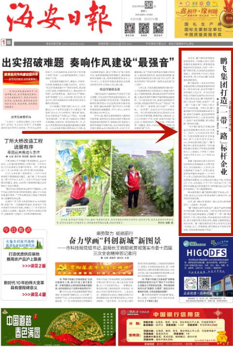 近年來,鵬飛集團(tuán)貫徹落實(shí)新發(fā)展理念,全面融入國內(nèi)、國際雙循環(huán)發(fā)展新格局,統(tǒng)籌推進(jìn)疫情防控和經(jīng)營發(fā)展,鞏固“一帶一路”國際市場,在加快科技創(chuàng)新的基礎(chǔ)上,加快單機(jī)產(chǎn)品向工程總承包轉(zhuǎn)型,努力開創(chuàng)出鵬飛高質(zhì)量發(fā)展新局面。